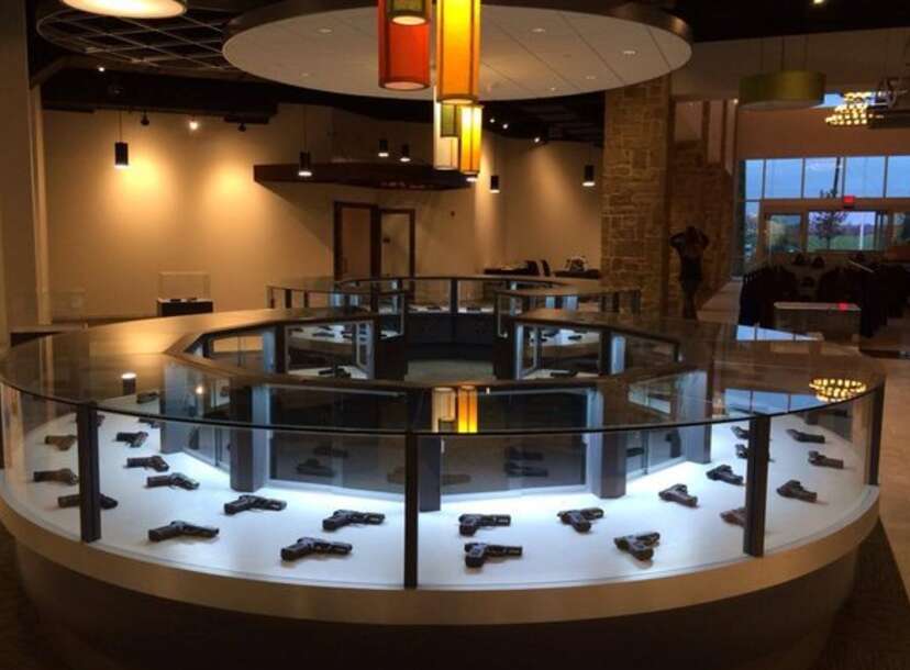 6565 Eldorado Pkwy Frisco TX 75033. A large sales floor for guns apparel and related merchandise. Digitally controlled target systems.